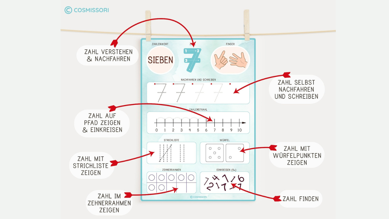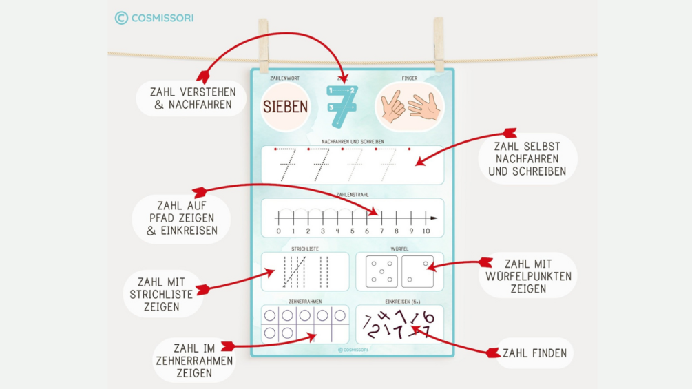 Exercises for kindergarten children, preschool children or primary school children to discover and show numbers: